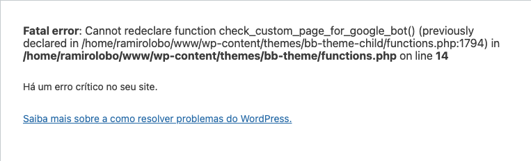 Oi, @ramirolobo, tudo bem? Lembra de mim? 😅 @ramirolobo, eu sempre, mas é sempre mesmo, uso o seu Gerador de Política de Privacidade e hoje, quando fui gerar para um outro site, apareceu uma tela de erro do Wordpress 👇